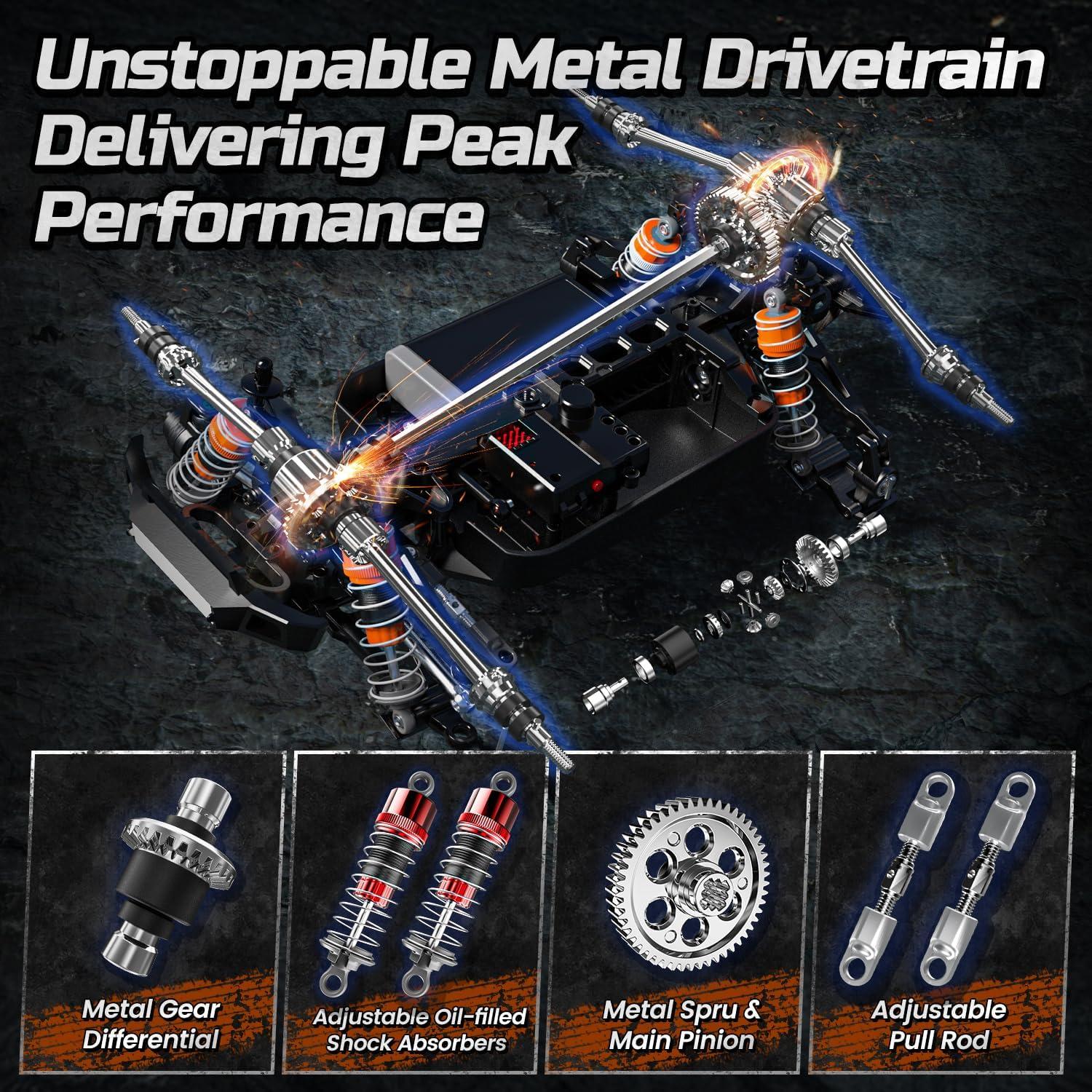 Pro-Level Control with Reinforced Powertrain – Featuring steel center shafts, alloy gears, and impact-resistant composite parts for a perfect balance of strength and flexibility. Tackle any terrain with confidence and precision.