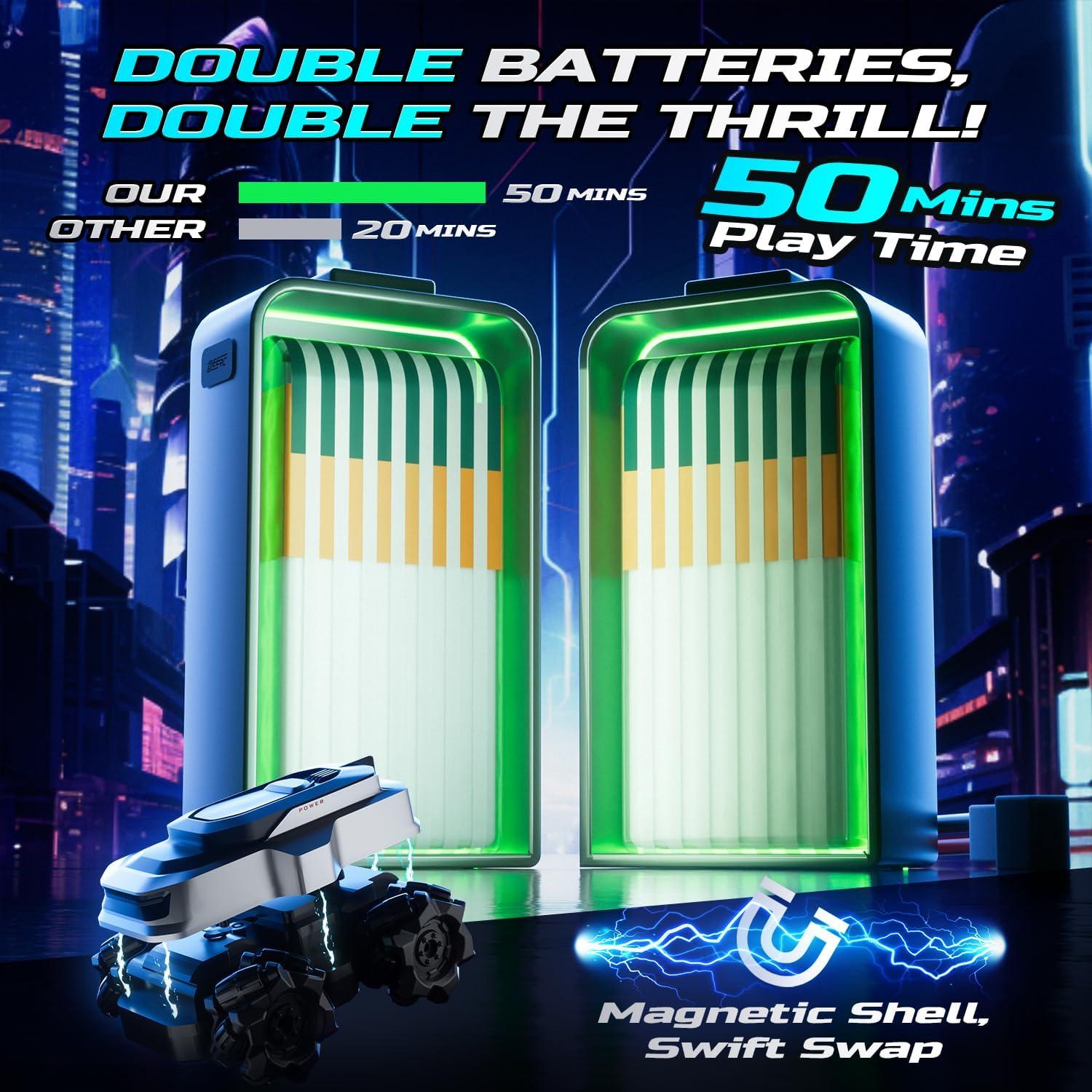 【2 BATTERIES, 50 MINUTES NON-STOP FUN】Never let the fun stop early! Includes 2 rechargeable batteries for a total of 50 minutes of continuous playtime. While one battery is in use, the other can be charging, ensuring endless entertainment.