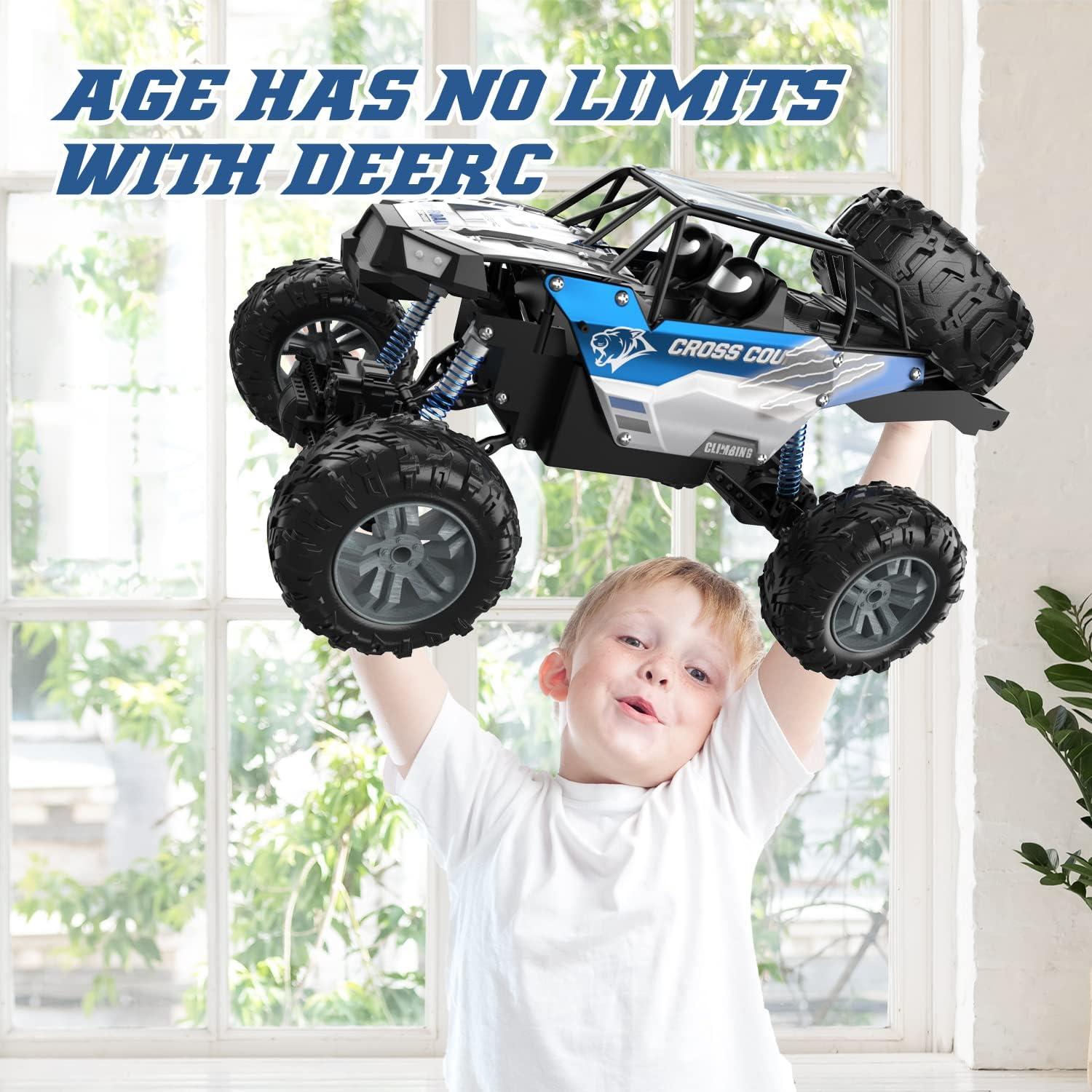 Unimaginable Super Battery Life: Equipped with 2 professional 7.4V, 1200mh upgraded LIPO batteries, each battery can be used for about 40 mins. You can enjoy the fun of driving for about 80 mins (depending on the terrain and operation). If you are looking for an exciting present for children at Christmas/Halloween/Birthday party, The huge DE60 must be the best choice. Come and join the infinite fun of DEERC!(Please note that, when you receive DE60, the rear tire needs to be installed manually)