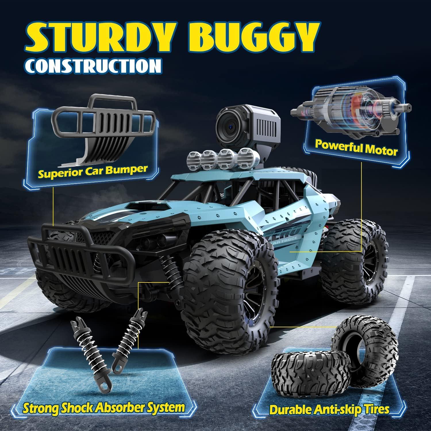 【Dual Control Mode】You can drive this truck with two modes ①2.4Ghz radio remote control( radio control range up to 165ft), it allows you racing them with your friends at the same time.② Mobile phone App driving (Wi-Fi control distance up to 100ft ), You don't need to follow the car around and can share what you capture with your friends or the world via social media.