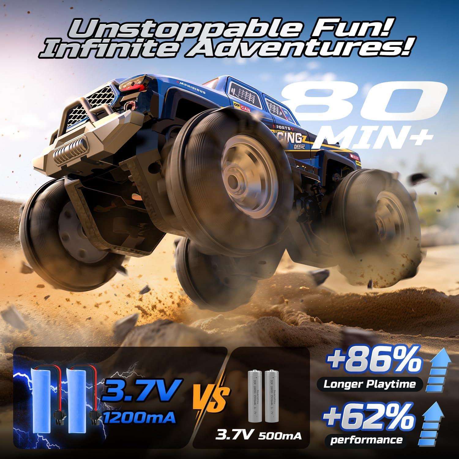 【2 Rechargeable Batteries – Precharged & Ready to Race】No more playtime cut short! This RC truck includes two precharged lithium batteries, delivering up to 40 minutes of total run time. That’s enough for long backyard adventures, races with friends, or looping through obstacle courses without missing a beat. Just swap and go—no waiting, no downtime.